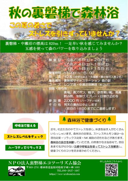 秋晴れの裏磐梯で「気持ちい~い」森林浴
