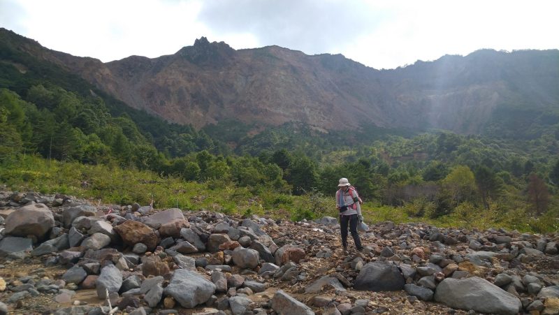 赤埴林道からスタートし、噴火壁を下山し裏磐梯登山口駐車場に出るルートで侵略的外来種コウリンタンポポの調査と防除活動を行いました。