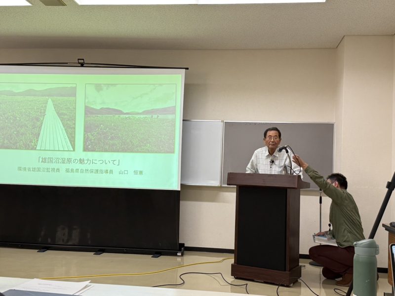 10月3日(金)喜多方市文化センターにて「雄国沼湿原の現状とこれから~シカ侵入について~」の講演会を行いました。